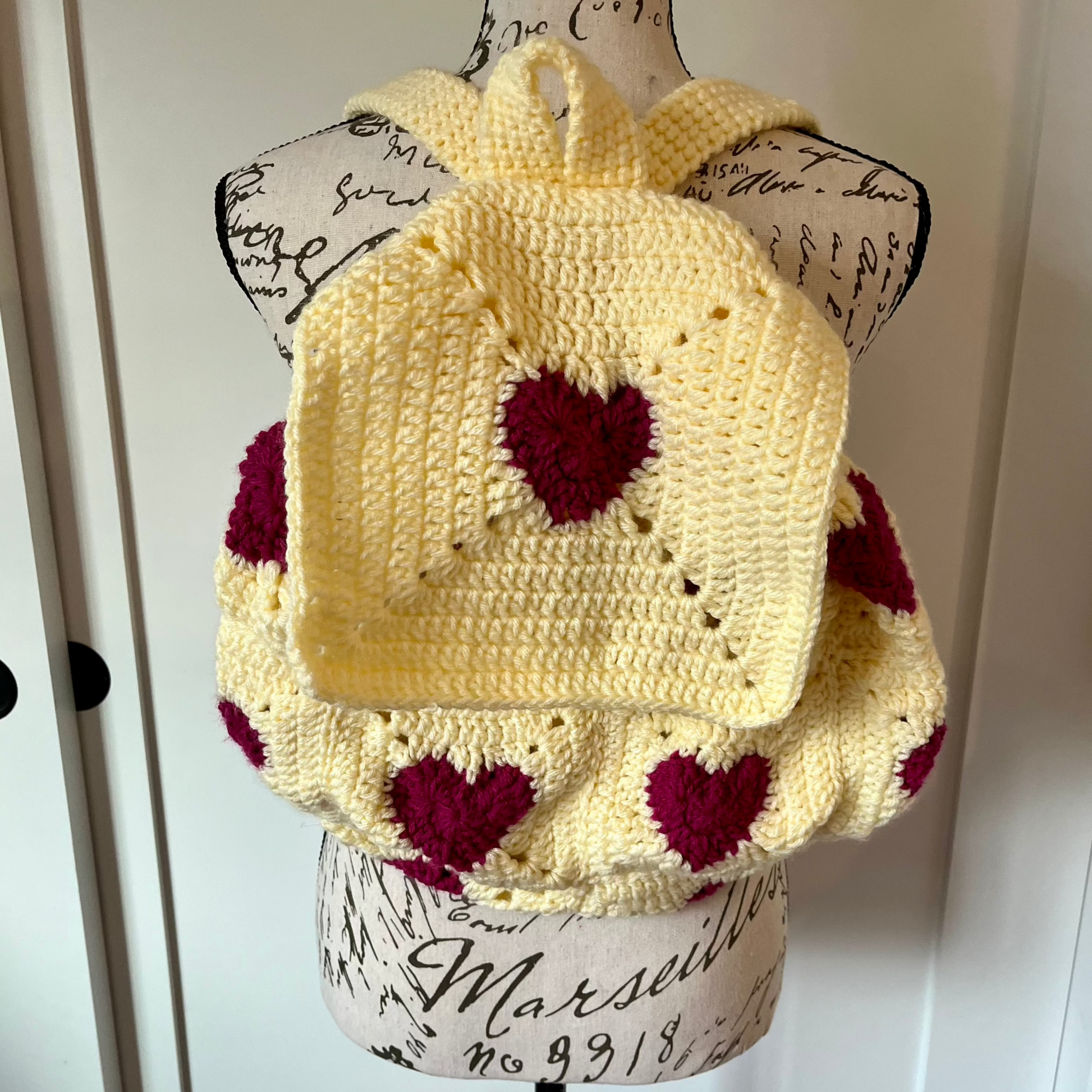 The Crochet Heart Backpack is a stunning blend of craftsmanship and style, perfect for those who appreciate unique, handmade accessories. Featuring intricate crochet Heart designs, this backpack is both functional and fashionable. Made from durable yet soft yarn. The vibrant, detailed floral pattern adds a touch of whimsy and color to any outfit, making it an ideal accessory for casual outings, festivals, or everyday use. Whether you're looking to add a pop of creativity to your wardrobe or searching for a thoughtful gift, this crochet floral backpack is sure to impress. Hand sew lining.