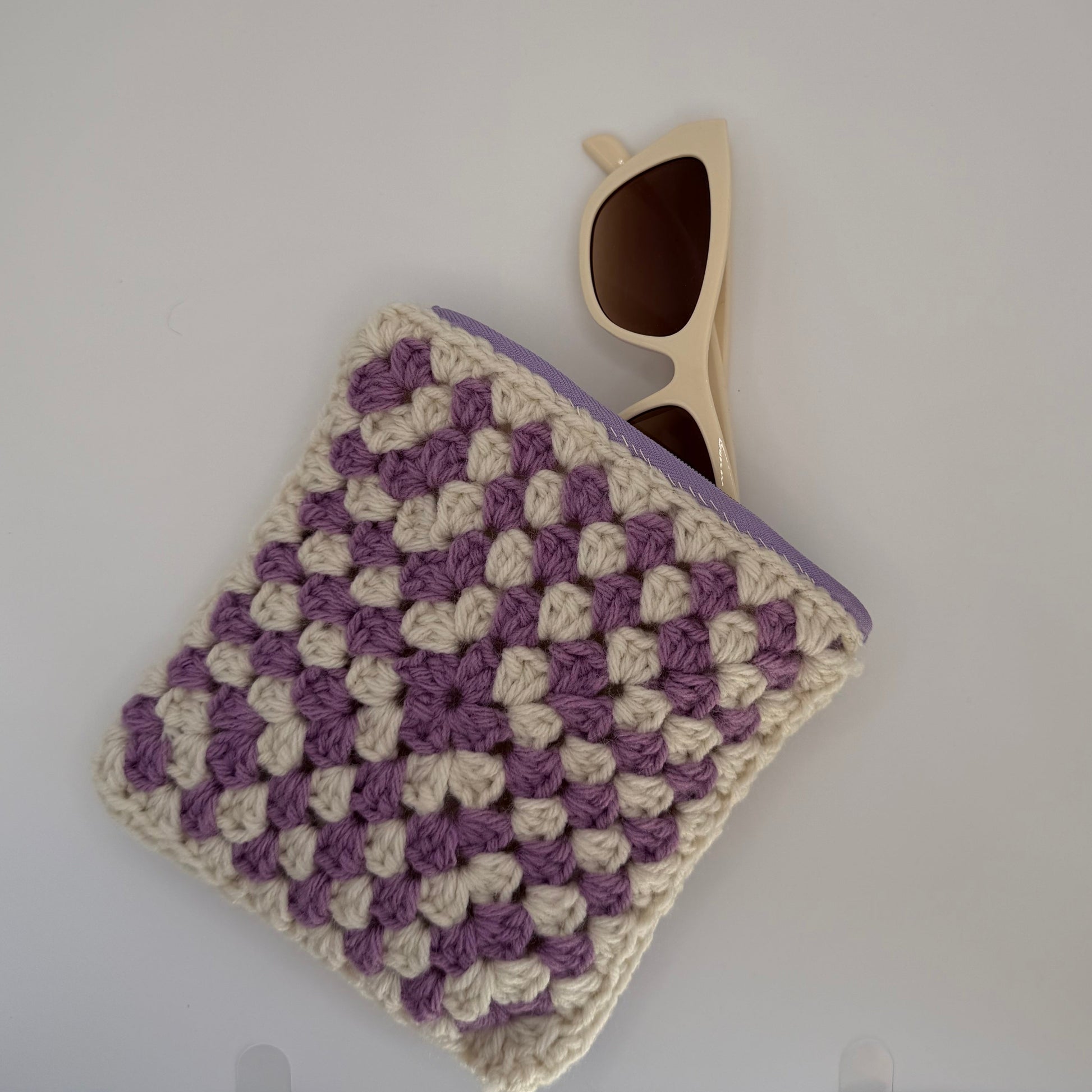 Crochet Purple & Cream Zipper Pouch