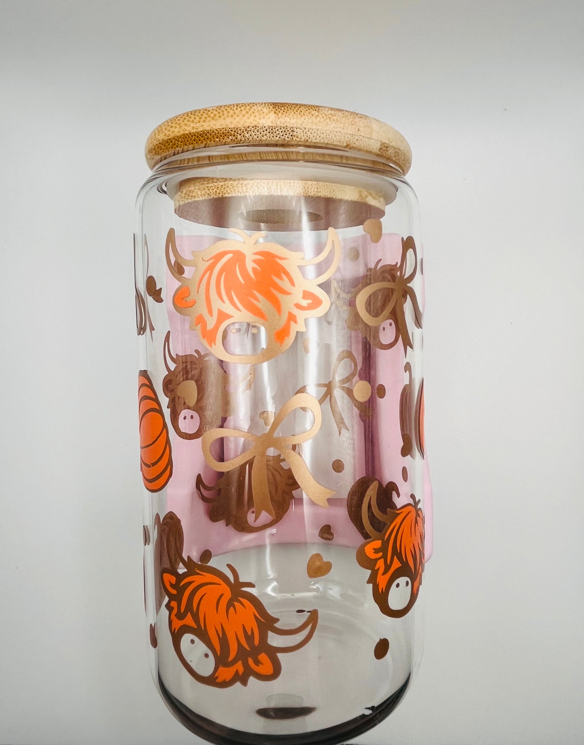 Highland Cow Pumpkins Bow Iced Coffee Glass